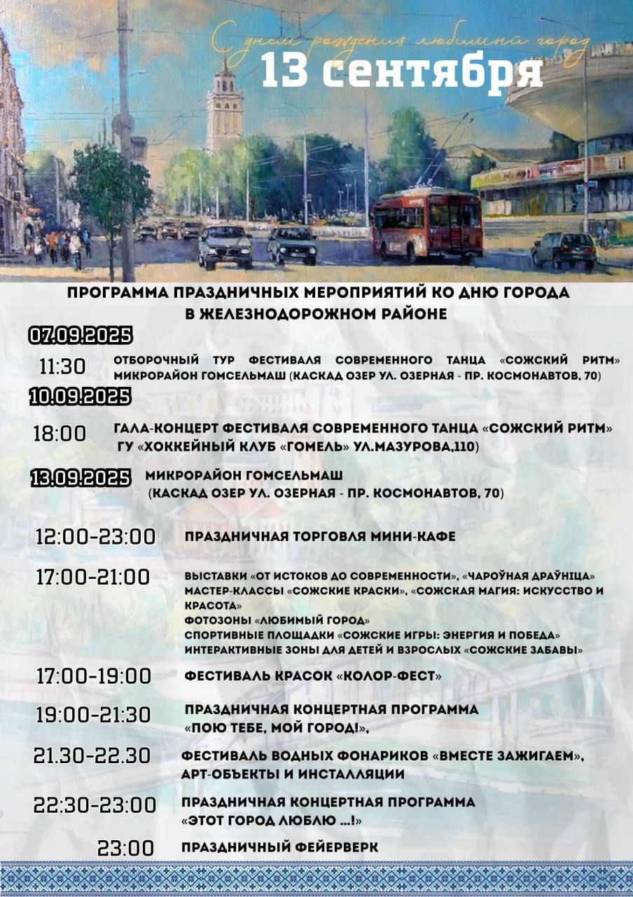 Гомель готовится к празднику, и наш родной Железнодорожный район уже во всей красе! В этом году для вас, наши дорогие жители, гости города, ученики и родители, подготовлена особая программа.