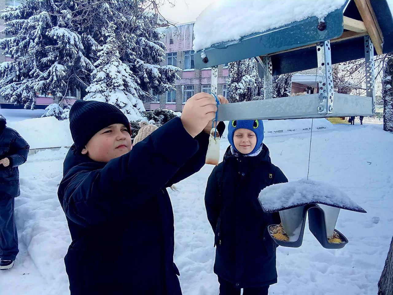 Учащиеся начальных классов смастерили и развесили на школьном дворе уютные кормушки для пернатых друзей! ✨