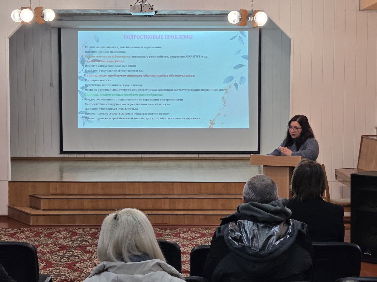 Ключевой темой встречи стала профилактика суицидального поведения среди несовершеннолетних. С содержательным выступлением перед родителями выступила приглашённый специалист – психолог центра здоровья молодёжи «Юность» Ефремова Л.А. В ходе беседы были даны актуальные рекомендации по поддержанию психологического благополучия подростков.