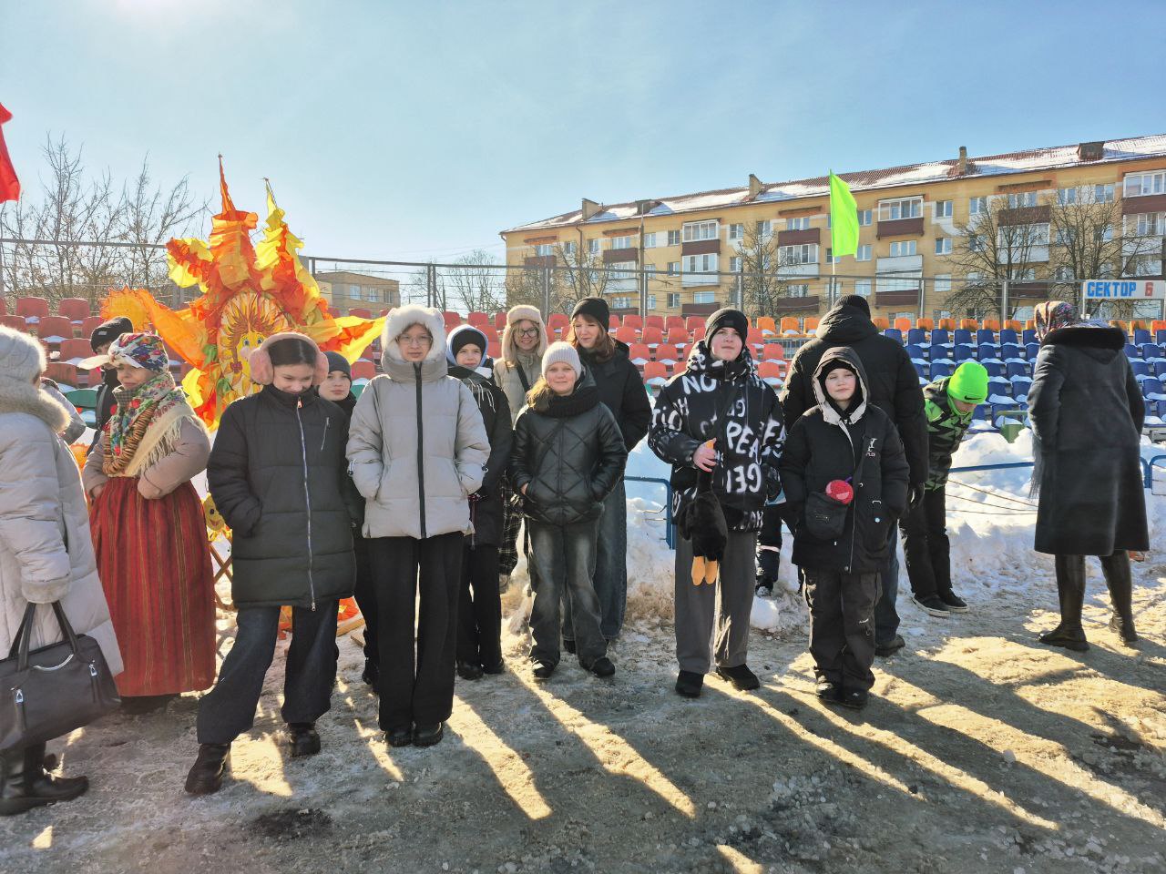 21 февраля 2026 года педагоги и учащиеся школы приняли активное участие в районном праздновании Масленицы, которое развернулось на стадионе «Гомсельмаш» в Железнодорожном районе. ☀️