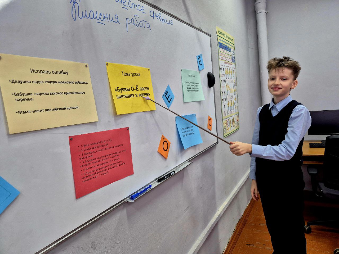 📝 В 5 классе прошёл открытый урок по русскому языку на тему «Правописание о, ё после шипящих в корне слова», где ребята закрепили важное орфографическое правило.