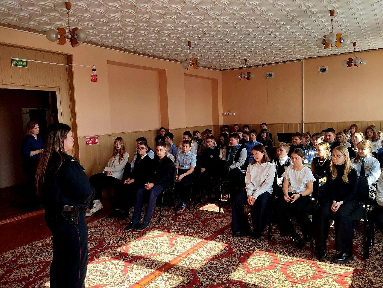 11 марта 2026 года в рамках профилактического месячника перед учащимися школы выступила инспектор ИДН Железнодорожного отдела внутренних дел г. Гомеля Ничингер Анна Руслановна.