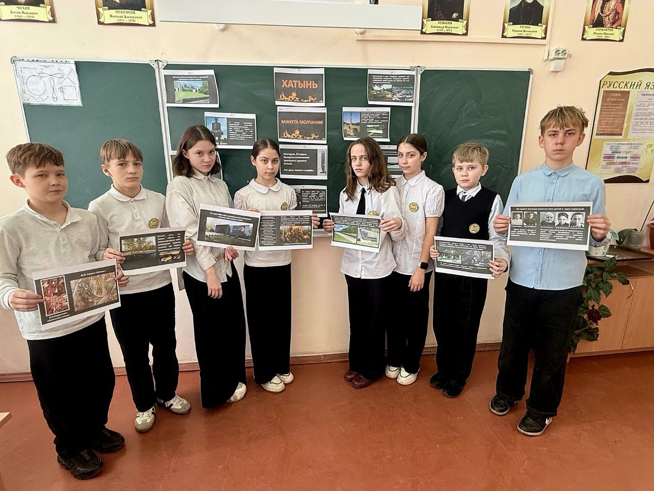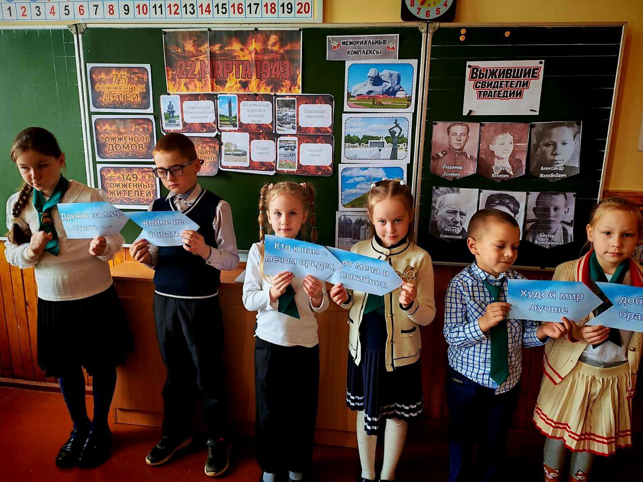 Сегодня для учащихся 1–9 классов прошли уроки памяти «Хатынь — страницы боли и памяти».