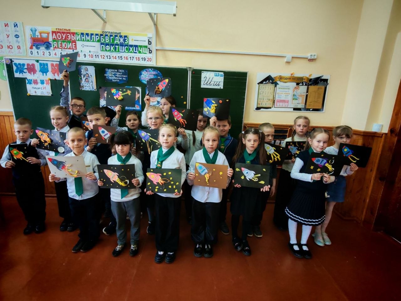 Учащиеся 1–9 классов познакомились с историей освоения космоса, узнали о первом полёте Юрия Гагарина и о том, как развивалась космонавтика в Беларуси и России 🇧🇾🤝🇷🇺