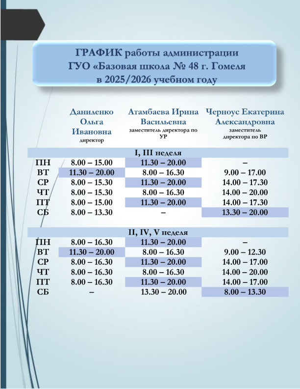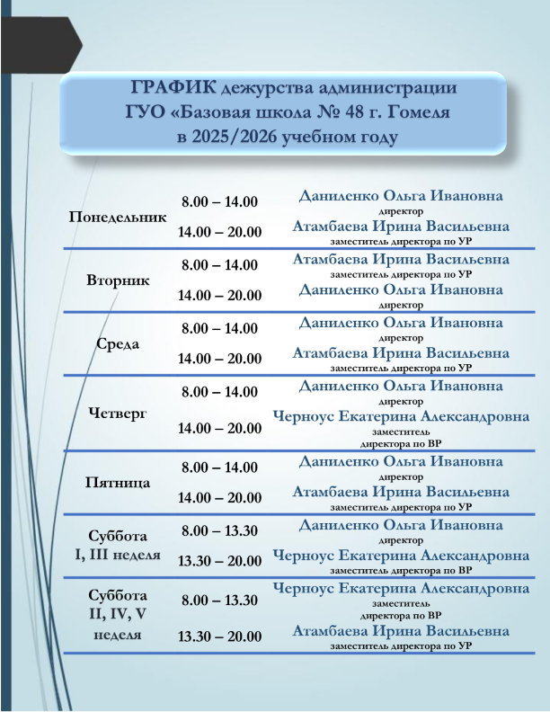 График работы администрации школы