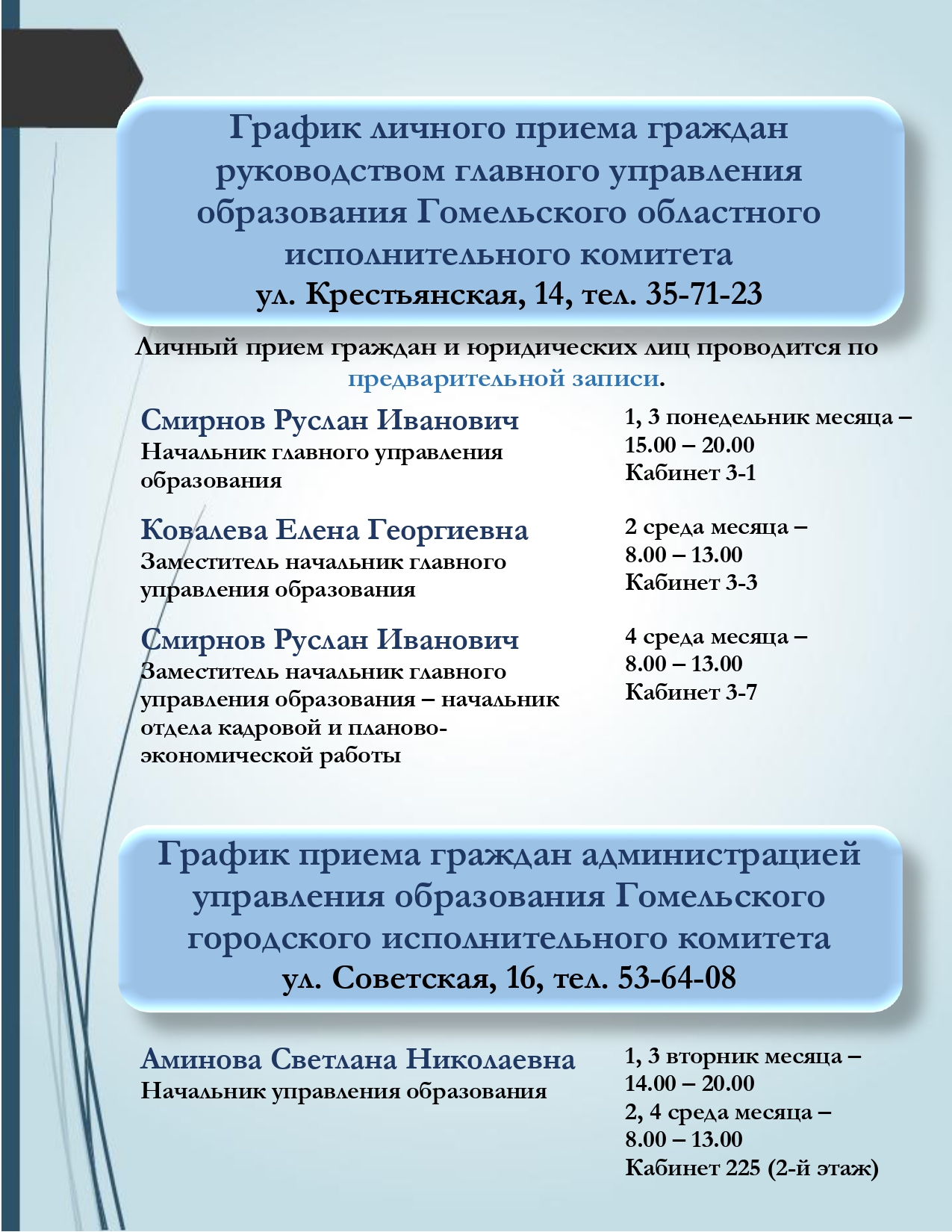 График приема граждан вышестоящими организациями